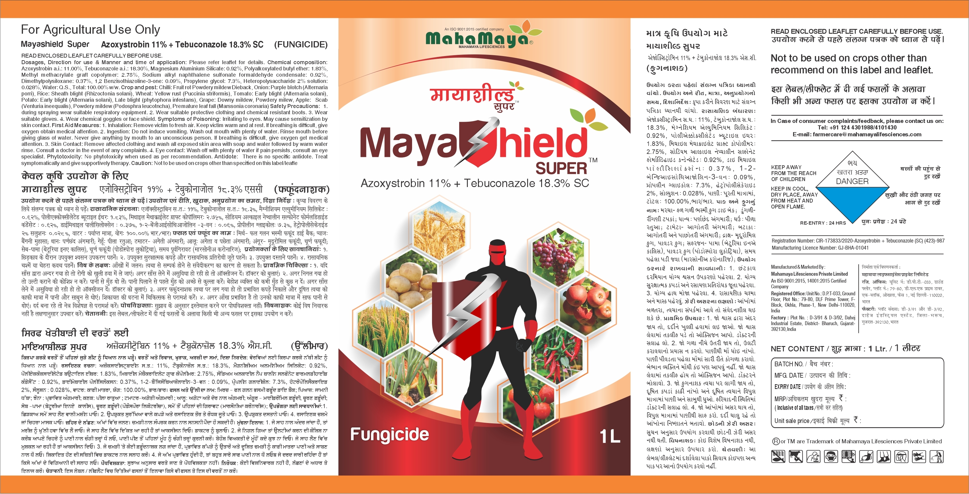 MAYASHIELD SUPER™ is a powerful combination of Triazole and Strobilurin chemistries & it exhibits Systemic and Translaminar movement and disperse rapidly in plant system.