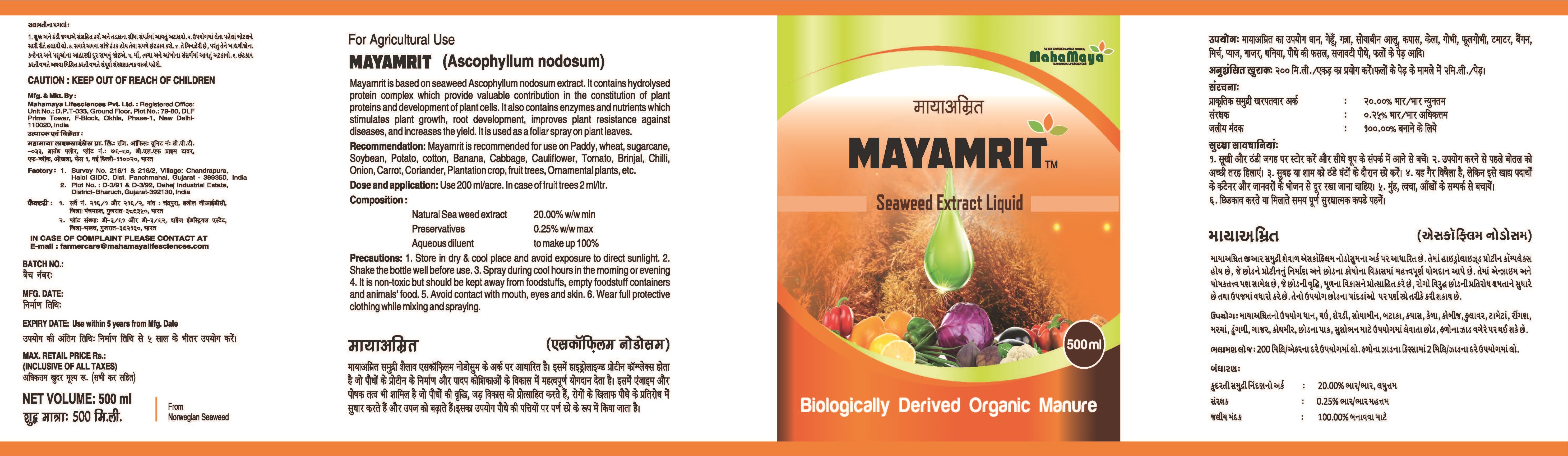 MAYAMRIT is an organic manure derived biologically from sea grass.